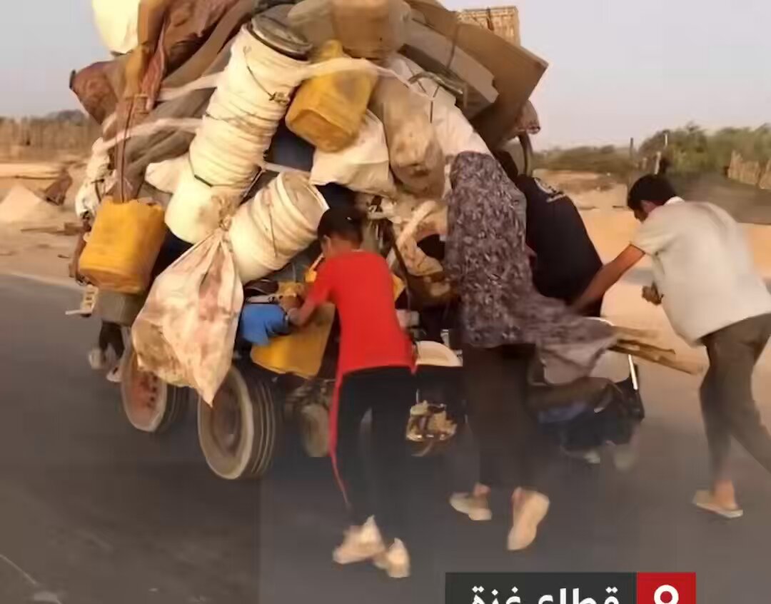 A touching clip A family drags a very heavy cart thousands of meters back to the rubble of their home. They never left or sold their land. #GazaCeasefire #Help_Gaza