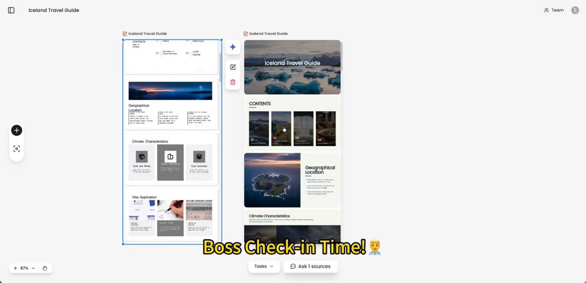 2/ Inside the canvas, all things connect and communicate* Turn one idea into endless formats—instantly. 🔥 Doc → Slide → Upload or paste any document → Click once → Get a clean, structured slide deck in seconds → Easy Format Switching: Turn long-form docs into…