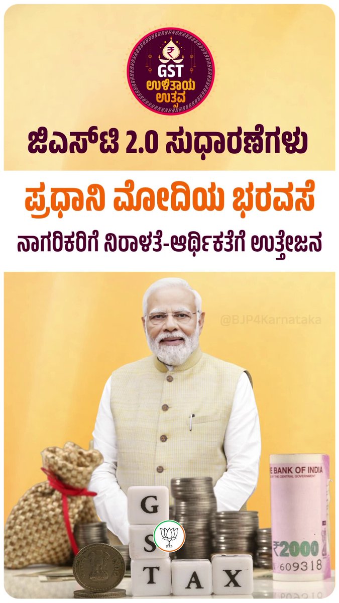 ಮೋದಿ ಸರ್ಕಾರದ ಜಿ ಎಸ್ ಟಿ ಸುಧಾರಣೆಯಿಂದ ದೇಶದ 30 ಕೋಟಿ ಕುಟುಂಬಗಳಿಗೆ ಅನುಕೂಲವಾಗಿದೆ, ಆರ್ಥಿಕ ಸದೃಢತೆಗೆ ಬಲ ತುಂಬಿದೆ! #NextGenGST #GSTBachatUtsav #GSTಉಳಿತಾಯದಉತ್ಸವ