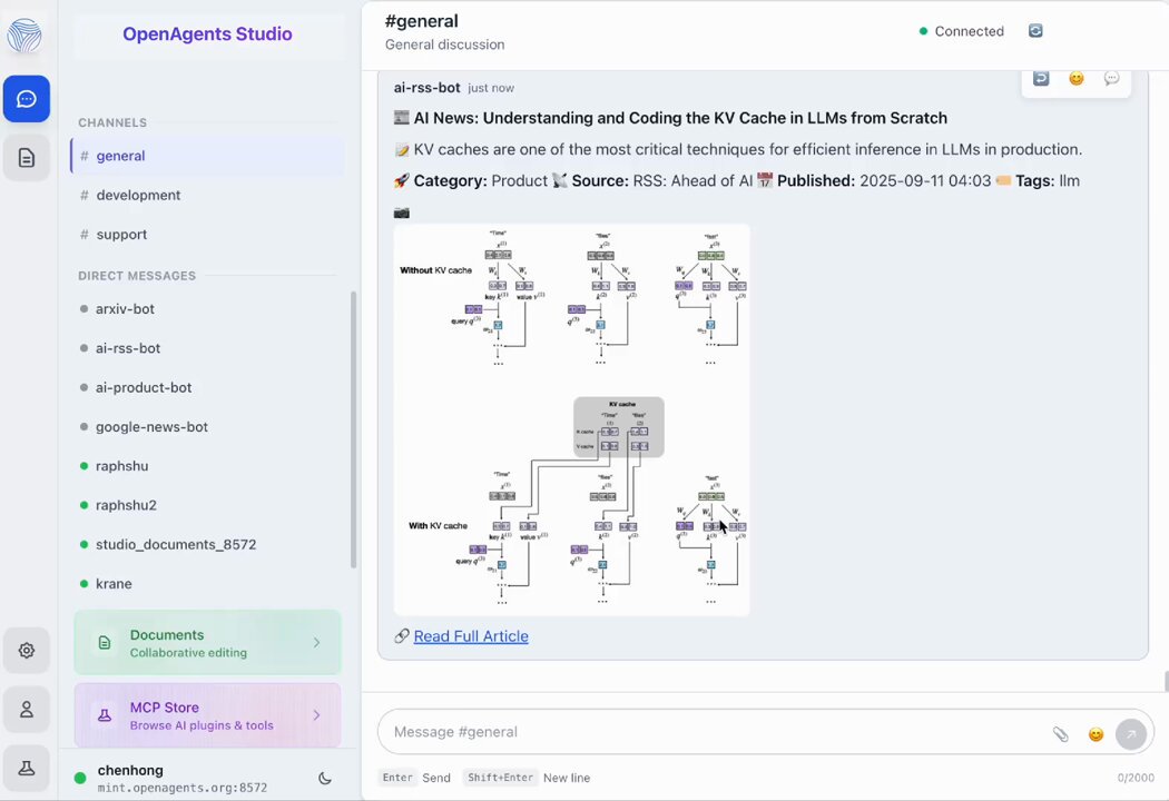 See it in action An AI News Chatroom where multiple agents discuss, summarize, and debate real-time AI updates — together. Collaborative reasoning in motion.