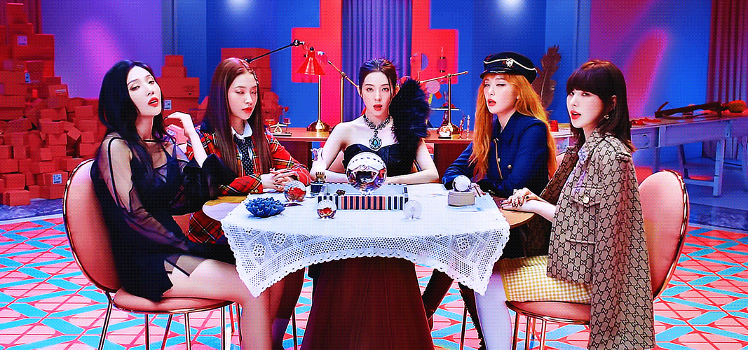 이 착장에 살짝 변형이 있었어 슬기-자켓 없는 조이- 뮤비의상이랑 제일 비슷했어 아이린 - 날개 귀여운 날개달린 가방 웬디- 깁스 없고 예리 - 자켓이랑 면사포 없고 와이셔츠 크롭