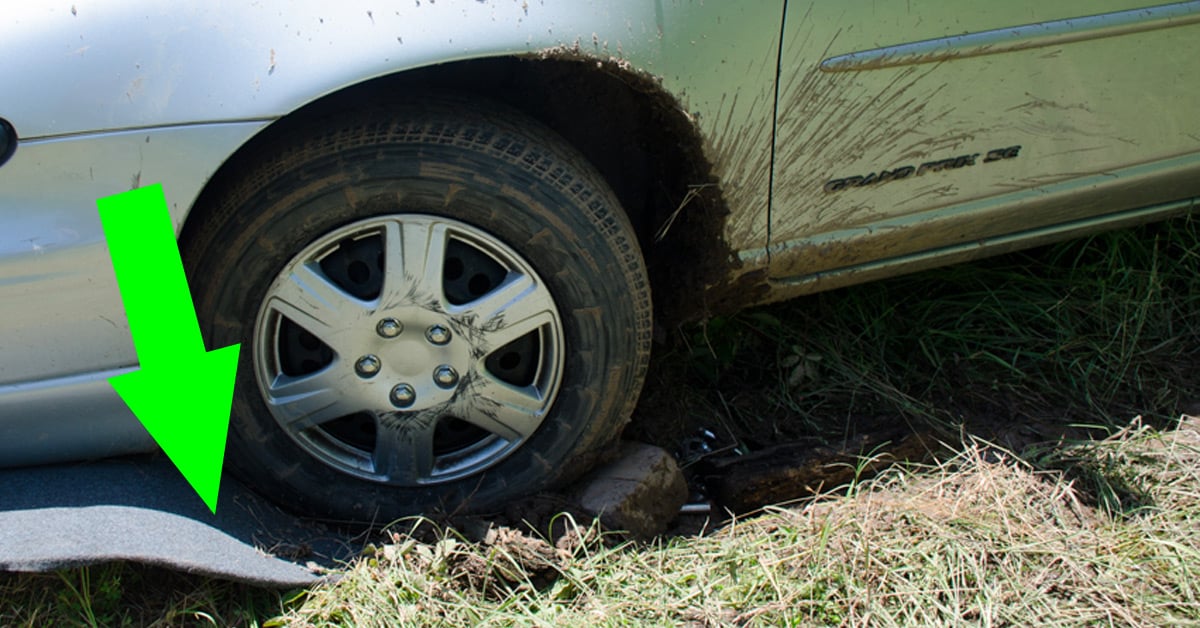 If you find yourself in a pinch and stuck in the mud, grab your car mat and put it under your front tire for extra traction. (via Stealthangelsurvival) ow.ly/rsXQ30obC85