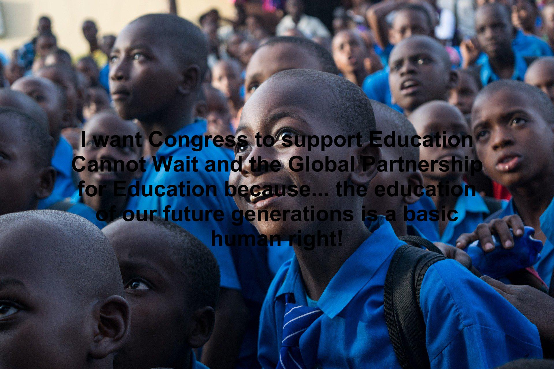 I want Congress to support Education Cannot Wait and the Global Partnership for Education because... the education of our future generations is a basic human right! media.globalcitizen.org/message_images…