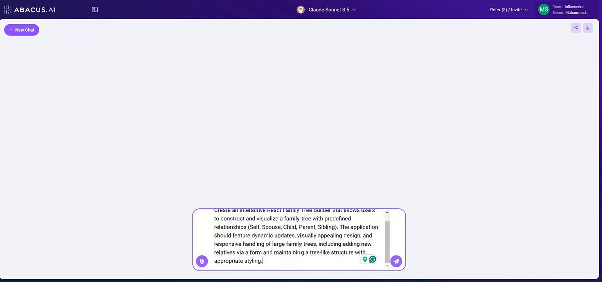 Game using Chat LLM - Family Tree Builder using React (Claude)