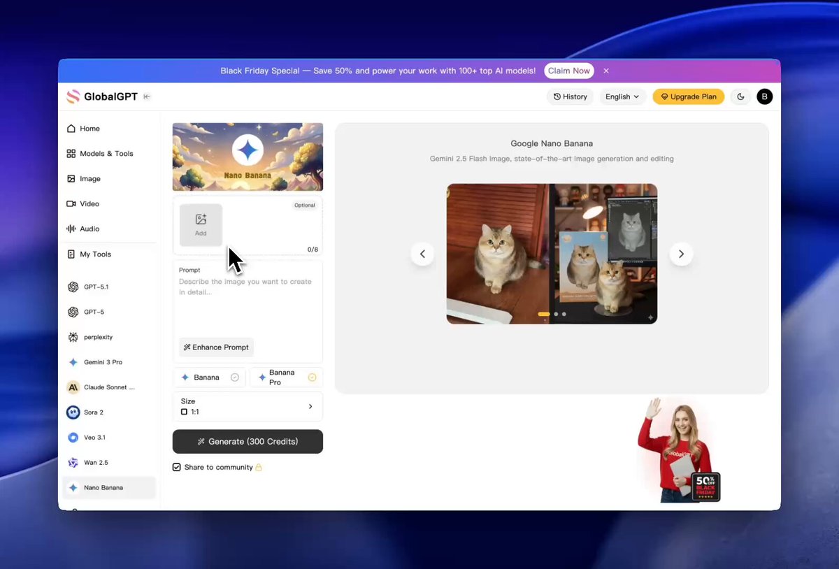 AI BlackFriday Madness is now! → 1 account, no regional restrictions. → Get access to 100+ advanced models — all powered by official APIs. → Work, study, research, create videos, images, reports, and more… → Up to 50% off now, only on GlobalGPT 👉 glbgpt.com/home