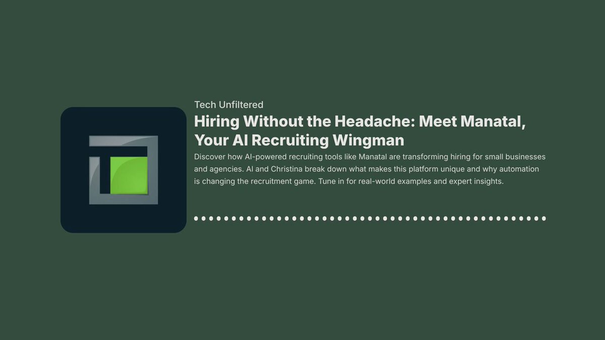 🎙️ Tech Unfiltered Podcast Episode of the Week (8:18) Tune in to a deep dive by Al Harris and Christina of Technical Framework: podcast.techframework.com/episodes/4353d… #TechUnfiltered #AIRecruiting #Manatal #HiringSimplified #SmallBusinessTools #HR #RecruitingAutomation