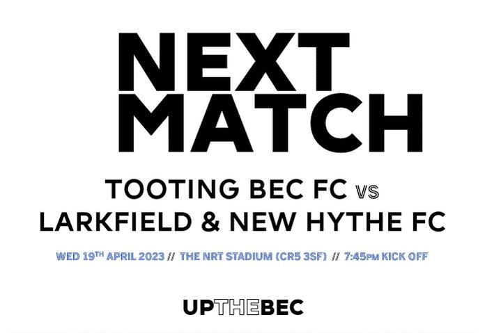 𝗨𝗣 𝗡𝗘𝗫𝗧… It’s the business end of the season as we enter the @SCEFLeague play-offs 📆 Wednesday 19th April 🆚 @LNHFC1961 🕒 7:45pm KO 🏠 The NRT Stadium (CR5 3SF) Please come down to support the boys in black and white tomorrow! #UpTheBec 🎺