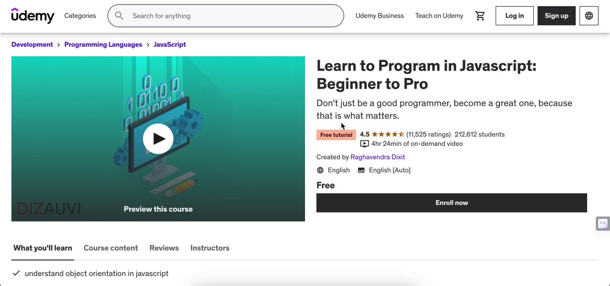 1. Learn to Program in Javascript: Beginner to Pro A Udemy course that will help you : ✓ understand object orientation in javascript ✓ write functional programs in javascript ✓ write rich internet applications (AJAX style) Link: udemy.com/course/program…
