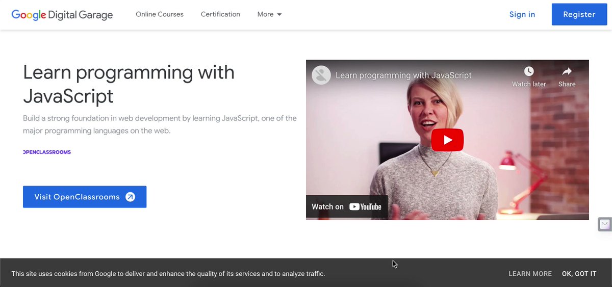 4. Google: Learn programming with JavaScript This course is designed to teach you the fundamentals of the JavaScript programming language and to give you lots of practice along the way! Link: learndigital-staging.withgoogle.com/digitalgarage/…
