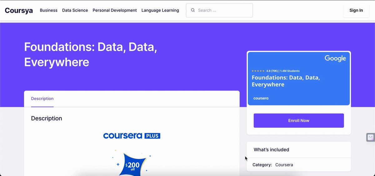 1. Google Data Analytics: In this program, you’ll learn in-demand skills that will have you job-ready in less than 6 months. No degree or experience is required. 🔗coursya.com/product/google…