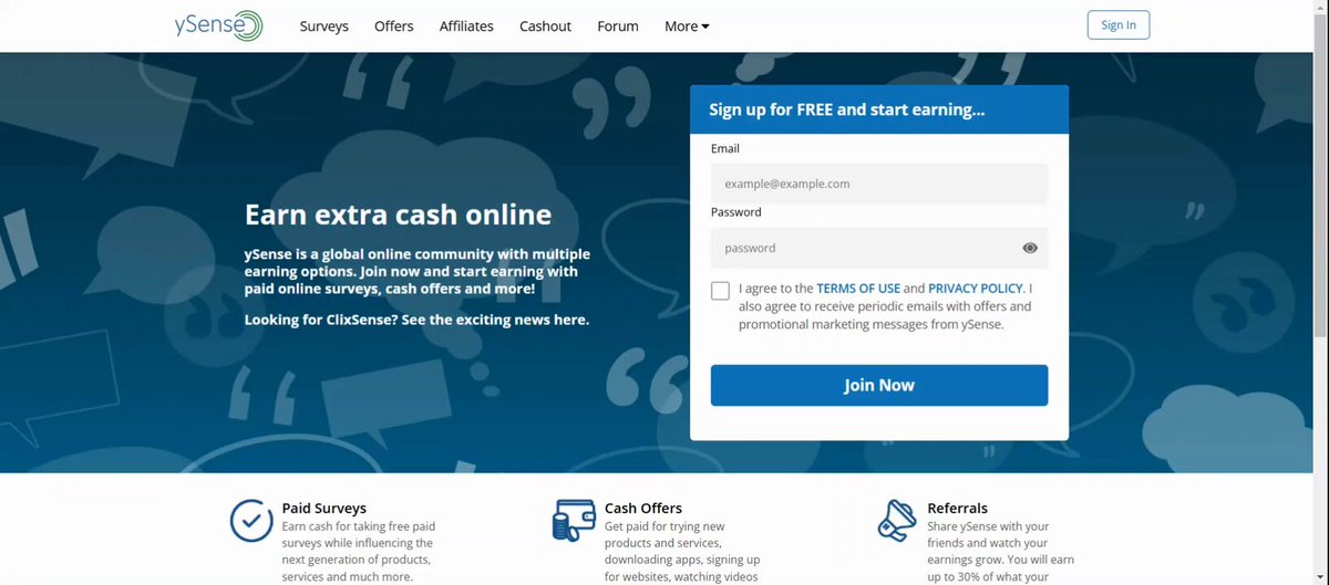 8. ySense An online earning platform offering paid surveys, cash offers, and quick tasks with multiple payout options including PayPal. Features mobile app access and various survey providers like Pollfish and Bitlabs for flexible earning ysense.com