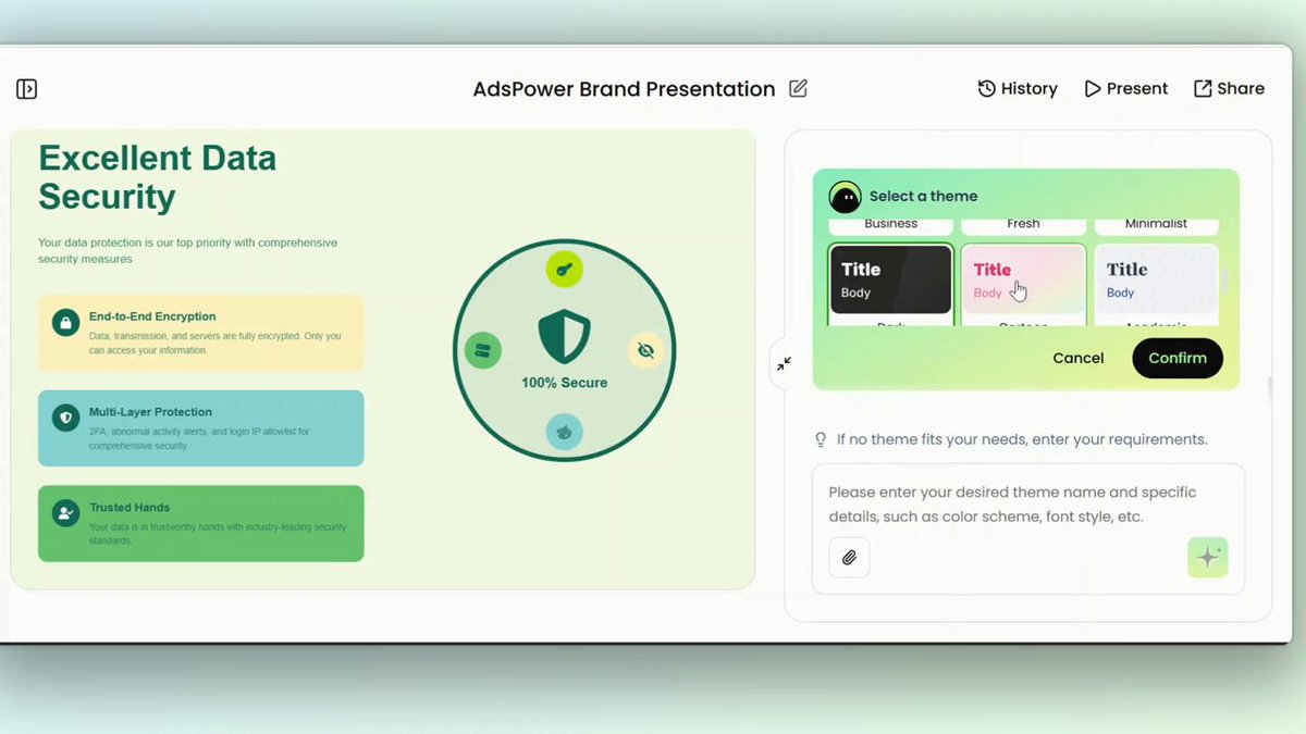 1. Chat-to-Deck Input your pitch or campaign brief, and AI instantly builds a structured, on-brand presentation.
