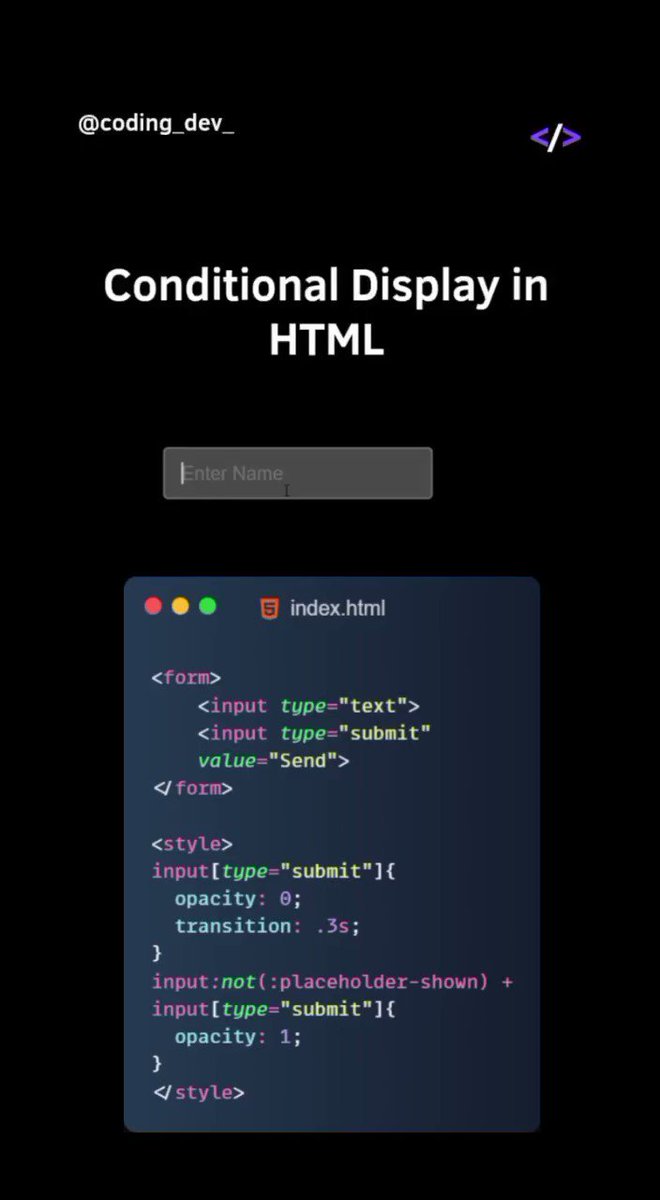 Conditional Display in HTML w/ CSS 🔥 #html #htmlcss #htmlcode #css #csstricks #cssanimation #css3 #javascriptdev #javascriptdev #frontend #frontenddeveloper #script #engineering #software #uiux #uiuxdesign #design #designinspiration #webdesign