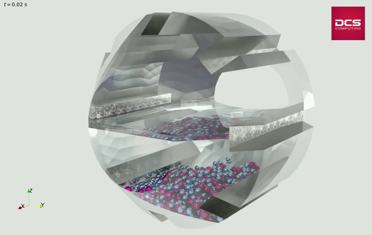 Simulating the interaction between particles, liquid and a gas phase inside a ball mill, using Aspherix and CFDEMcoupling. #Aspherix #Multiphaseflow #SimulationSoftware #ballmill #CAE #CFDEMcoupling
