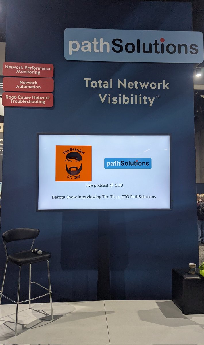 Get on over to booth 2724 at #CiscoLive for the live interview NOW with @TheBeardedITDad and Tim Titus, CTO of PathSolutions! #TheBeardedITDad #NetworkEngineer #NetworkTroublshooting info.pathsolutions.com/ciscolive2025