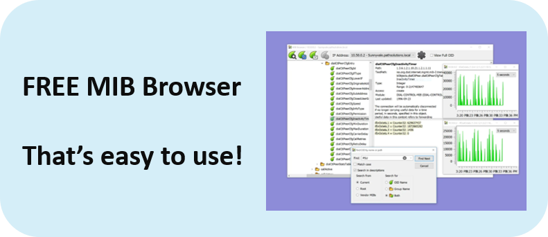 FREE MIB Browser – that's really easy to use! na2.hubs.ly/y0Bv0B0 All MIBs are pre-compiled so you don’t have to import them. Quickly find OIDs based on descriptions or names. Live graphing of any OID’s current status. #MIBbrowser #NetOps