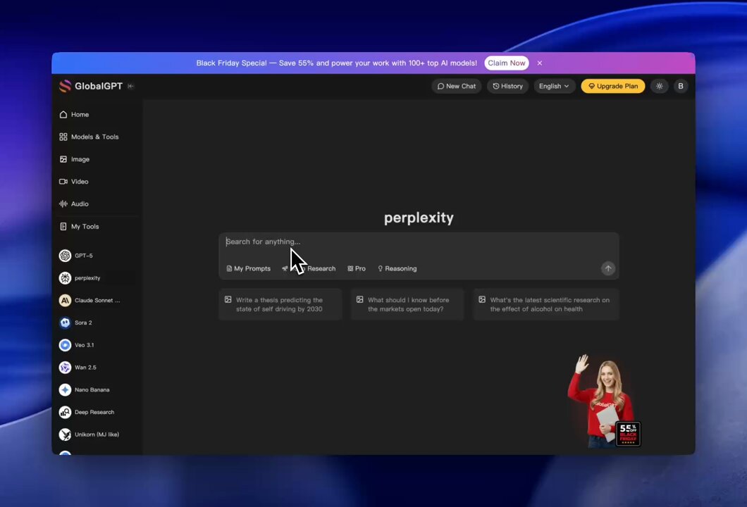 🏆 GlobalGPT just won Black Friday. GPT-5 precision. Claude creativity. Sora 2 cinematic power. One platform — no limits, no codes, no pay-per-use nonsense. If you’re still switching between apps, 👇 it’s time to make the move.