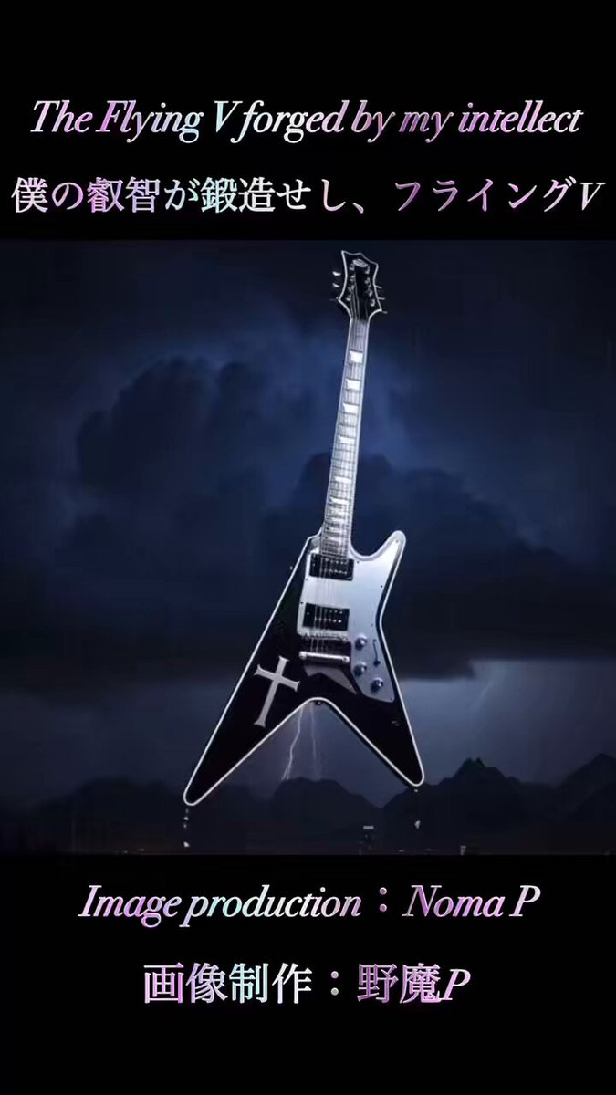 Gracefully descending from the sky, oh Flying V Struck by lightning, your body harbors invincible radiance The lovely sound your strings weave melts into the night breeze Gently stirring the hearts of those in love Enveloped in eternal melody, resonate forever beneath the stars