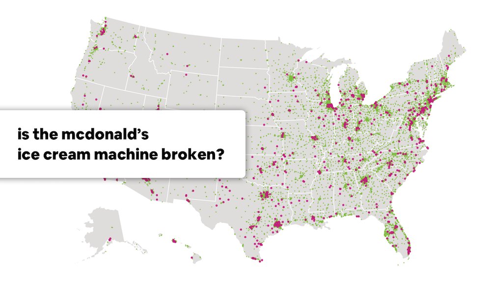 I reverse engineered mcdonald's internal api and I'm currently placing an order worth $18,752 every minute at every mcdonald's in the US to figure out which locations have a broken ice cream machine mcbroken.com