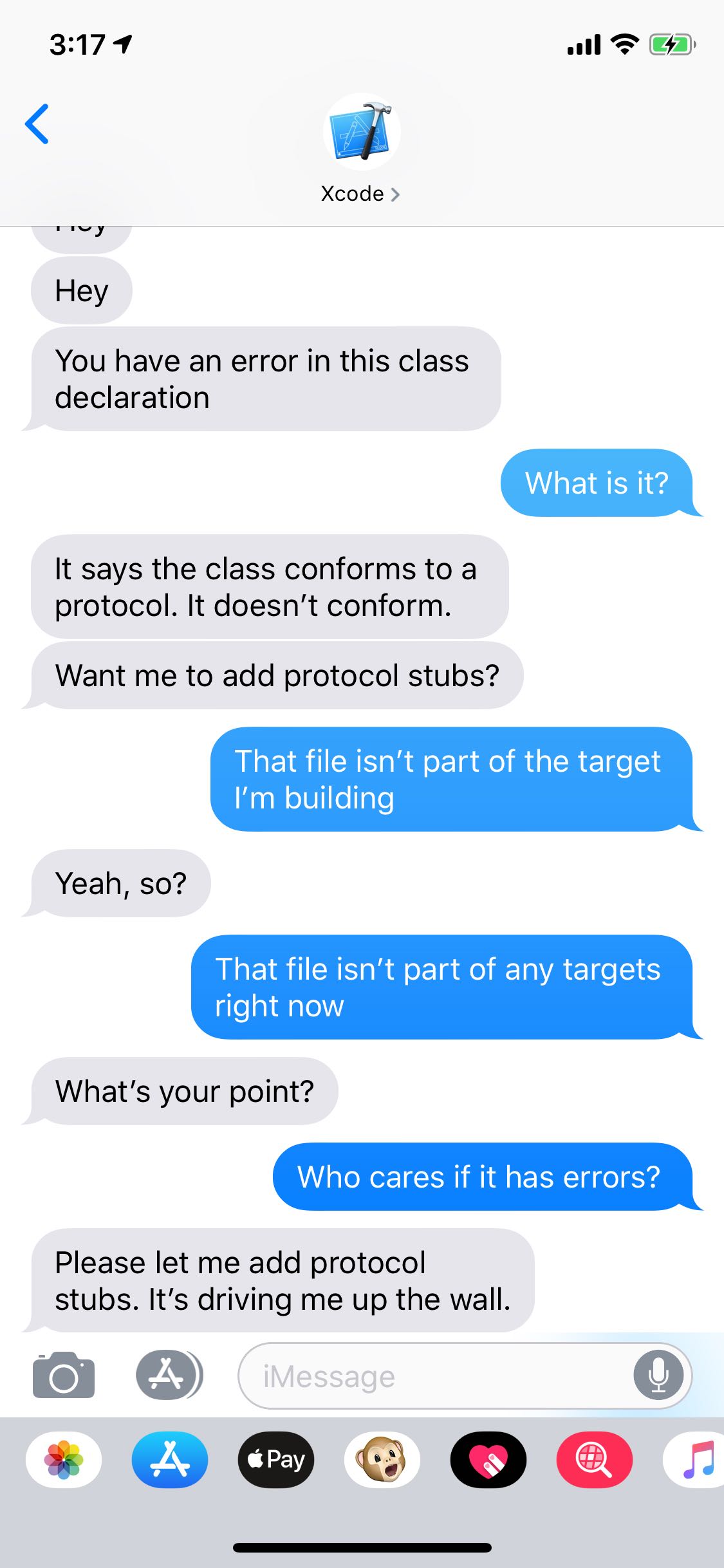 True, Xcode doesn’t tell me how to do my job, but it does take control at times. atomicbird.com/share/IMG_3069…