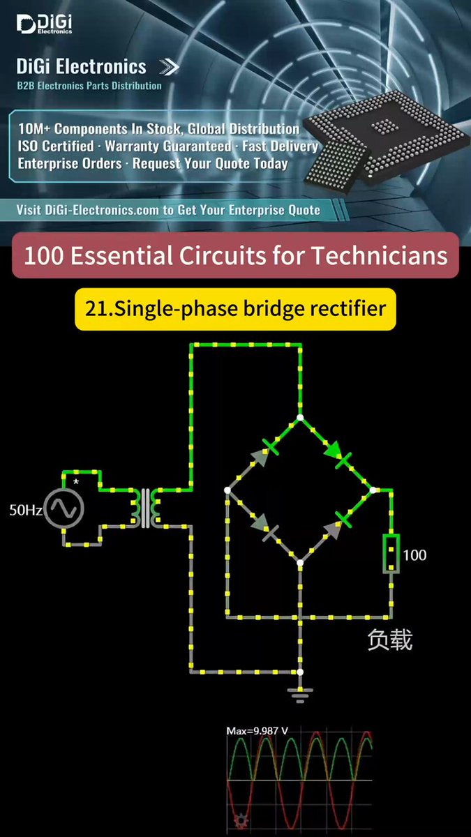 A fantastic animation comparing a single-phase bridge rectifier with a three-phase one. The difference in the output ripple is night and day! 🤯 This is why 3-phase is king for smooth DC power. #100Circuits #Electronics #ThreePhase #Rectifier #PowerElectronics #Circuit