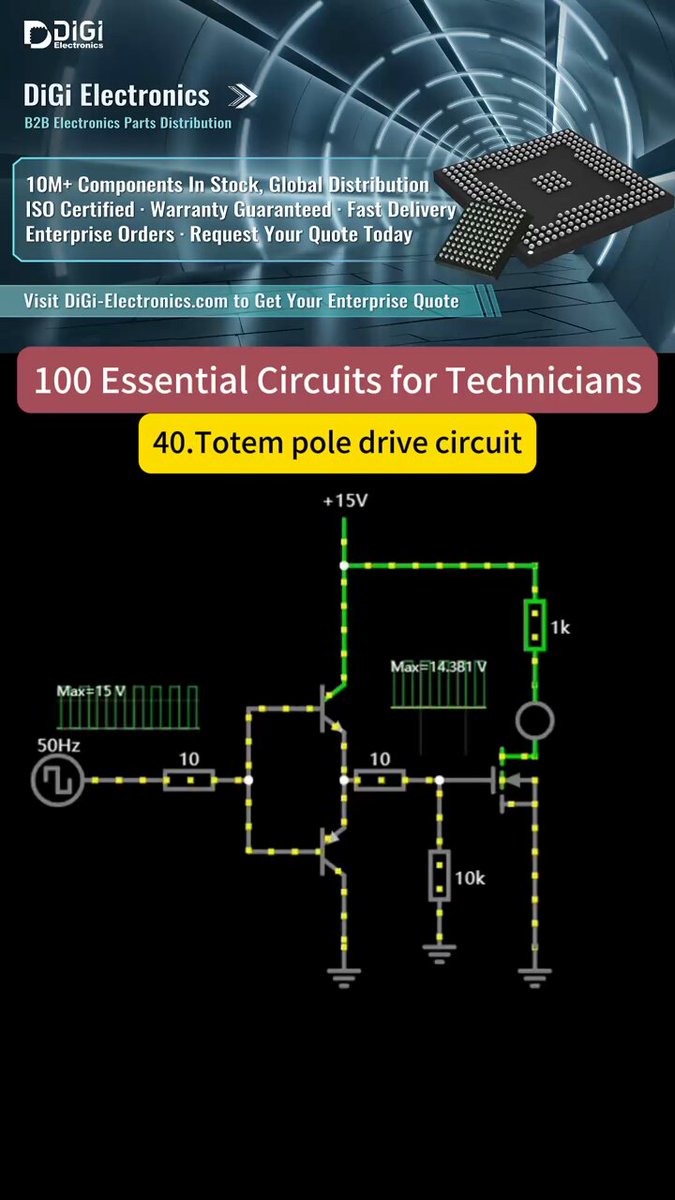 A perfect demo of the Totem-Pole's evolution! Circuit #40: The classic BJT driver. Circuit #41: The modern MOSFET (CMOS) driver.The video asks if they're inverted. Yes! This is a fundamental logic INVERTER. #100Circuits #Electronics, #TotemPole, #MOSFET, #BJT, #CMOS, #Inverter