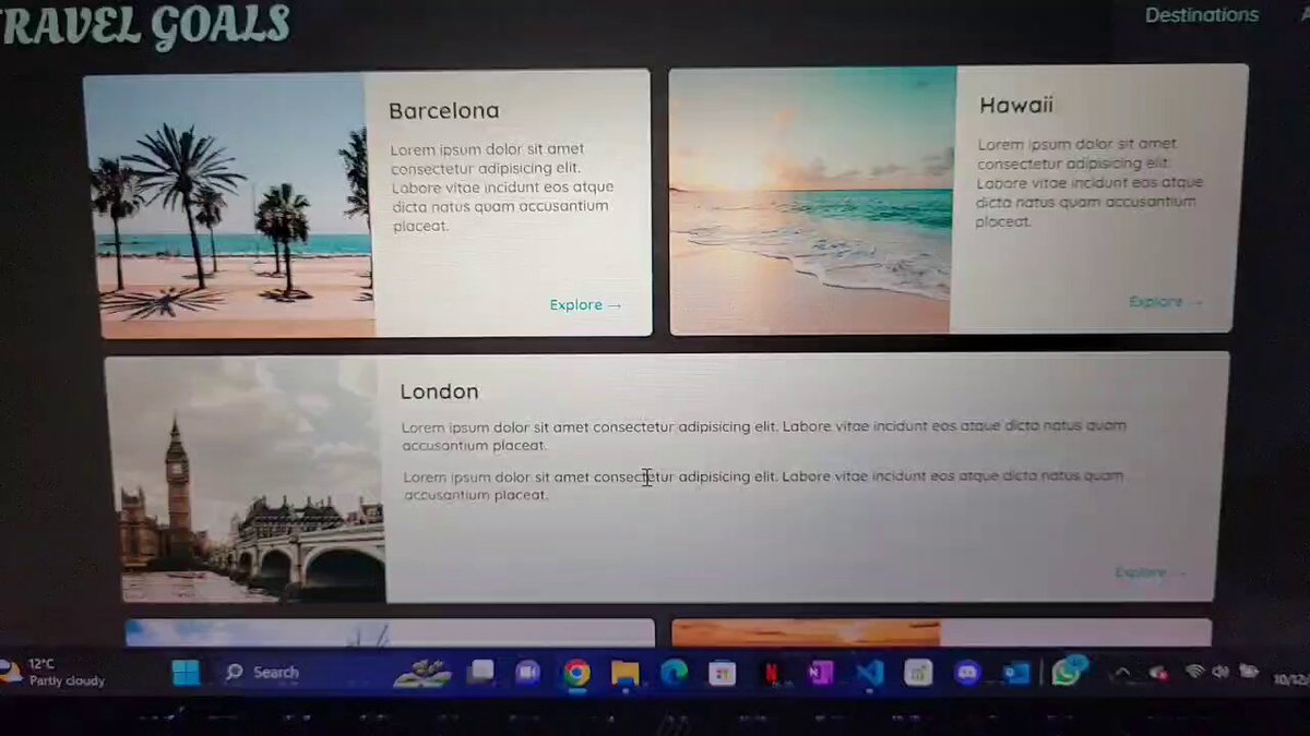 Day 20 of my #100daysofwebdev challenge Today I completed my travel website and learned more about styling grids and using unicode characters. Also built the landing page of a new website on my own