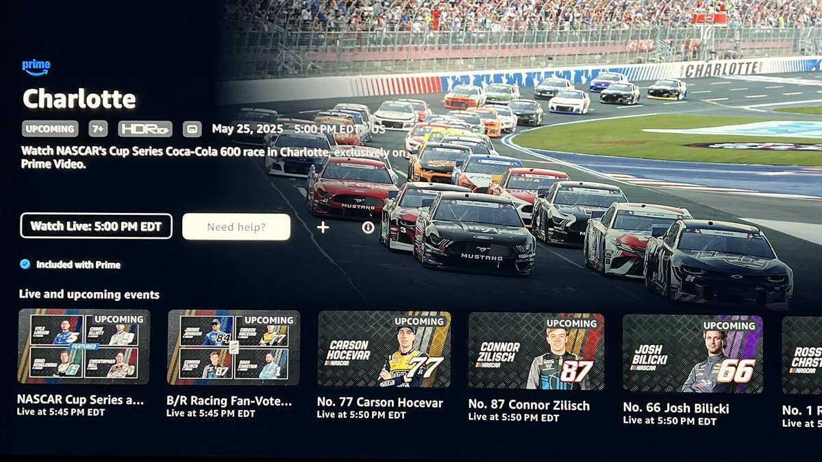 So, @PrimeVideo is actually going to be broadcasting the @NASCAR #CocaCola600 in #1080p #HD with HDR10 (or HDR10+) today at 5pm EDT. This seems like it’s the first time Amazon has broadcast a NASCAR race? Thanks, @TVAnswerMan! It’s worth noting that Prime Video also has a
