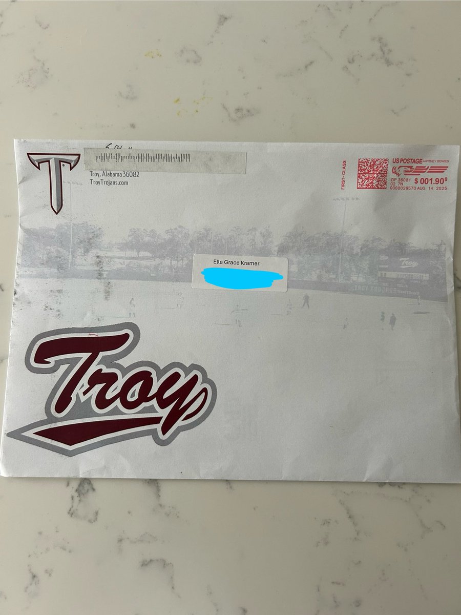 Bummed high school game got rained out, but that means I got to get home early to find mail! 💌Thank you so much @TroyTrojansSB ! #13days @e_newellcoach @NateTompkins @MackPuck01