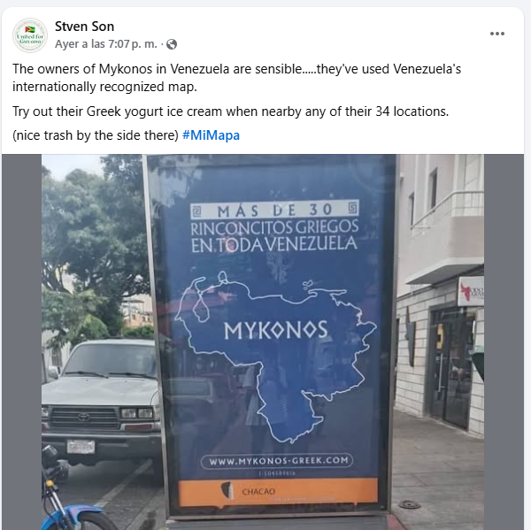 Los espías guyaneses que tenemos en nuestras redes están felicitando a Mykonos por el ilegal mapa. ;) #13Ene