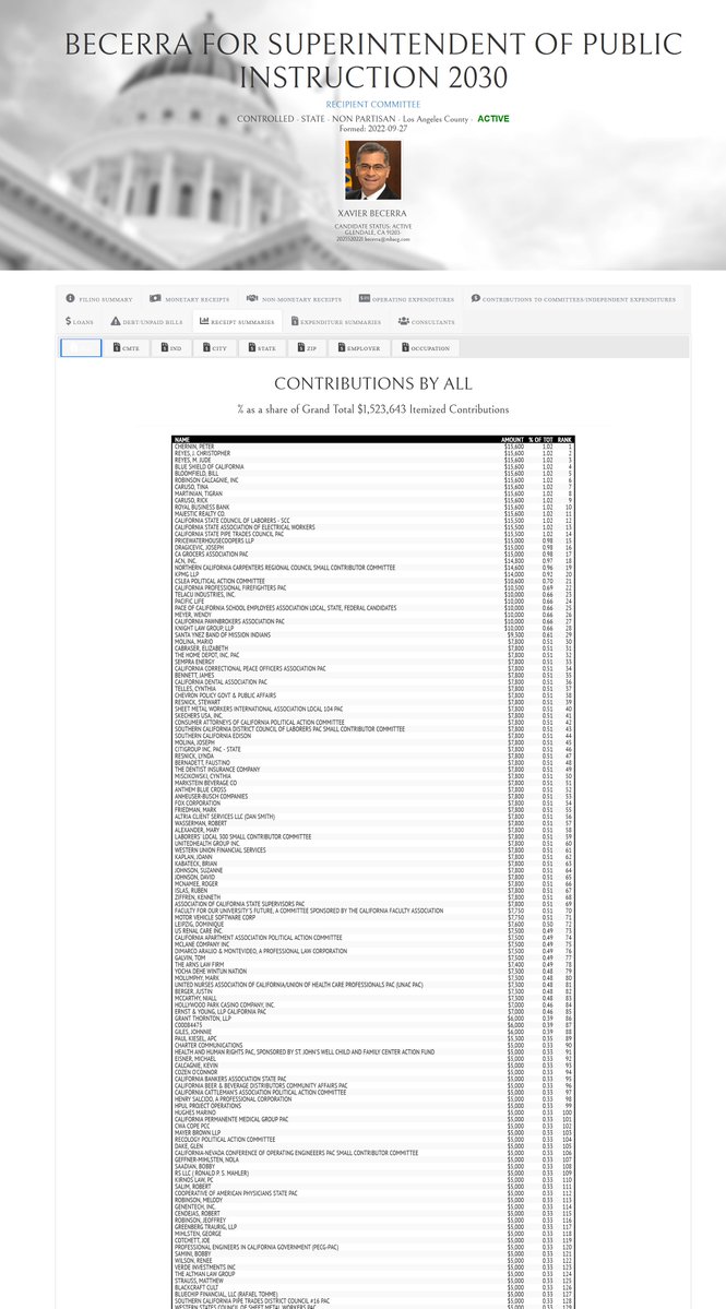 Becerra has raised ~$6.3M, w/$1.3M from his 2030 SPI account (which was itself funded by leftover 2018/2022 AG contributions) and ~$1.25M in leftover funds from his Congressional cmte. I would not describe either of them as being untouched by PAC/special interest money.