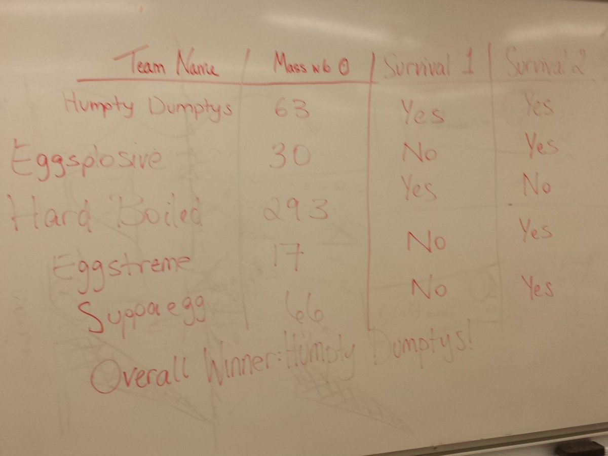 Congrats to the winning team humpty dumptys! This was a good idea. Definitely use next time. #210phys #eggsplosive