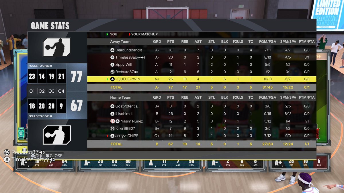 Decent stat line, factoring in buddy shot 3/23 ๐คฃ and team was held to a 5 pt second half ๐ ๐๐งฑ #nba2k25 #2ktop5 #2kfreeagent #2kcommunity #nba2k #2k