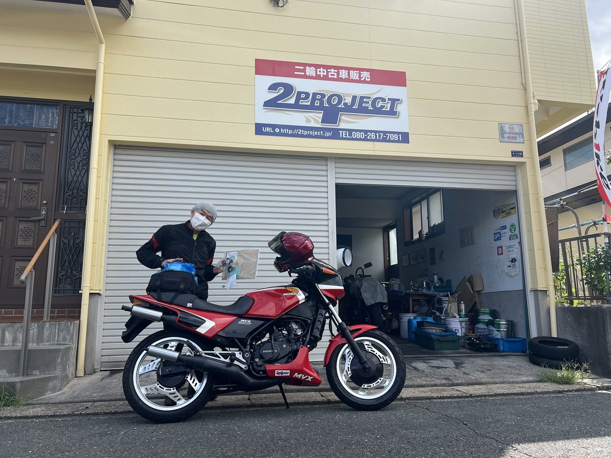東京都よりMVX250Fのオーナー様が車両引き取りに来られました。 帰りは下道で帰られたそうです!到着後、ご連絡いただき、絶好調だったと大変喜んでいただけました☺️ 無事直ってよかったです! ありがとうございました🙇🏽♂️ #mvx250f #浜松のバイク屋 #2tproject #浜松のバイク屋 #バイクメンテナンス