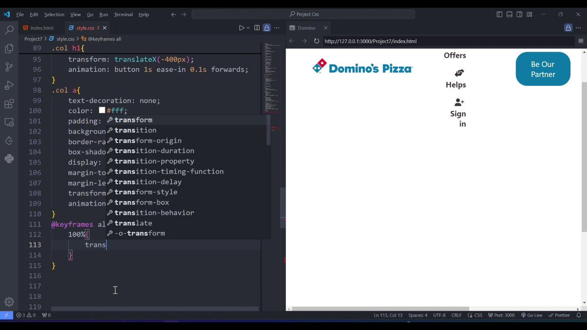Day 3 of #30DaysOfCSS: today, I learned how to use animations and transformations by creating a Domino’s front page. Progress is everything! #WebDev #CSS #LearningToCode