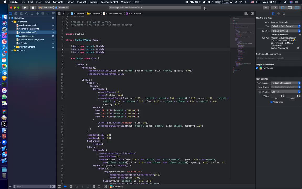 The third day in #30DaysOfSwiftUI challenge, 🌈 Color Mixer: - Slider - SF Symbol - RGBA - range #OpenSource github.com/FradSer/30-day…