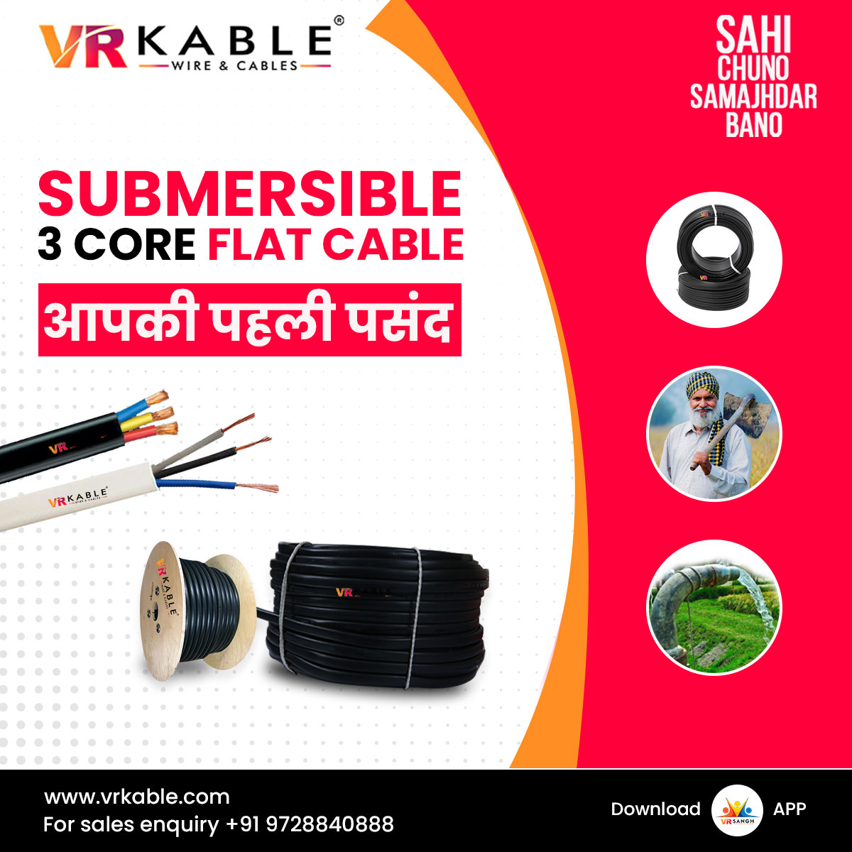 VR Kable's 3 Core Submersible Flat Cable - आपकी पहली पसंद For more details about the products and price, please call us at +91-9728840888 or send a email 📨 : [email protected] #vrkable #SUBMERSIBLE #3coreflatcable #wires #cables #wireandcables #safety #quality #wire #cable