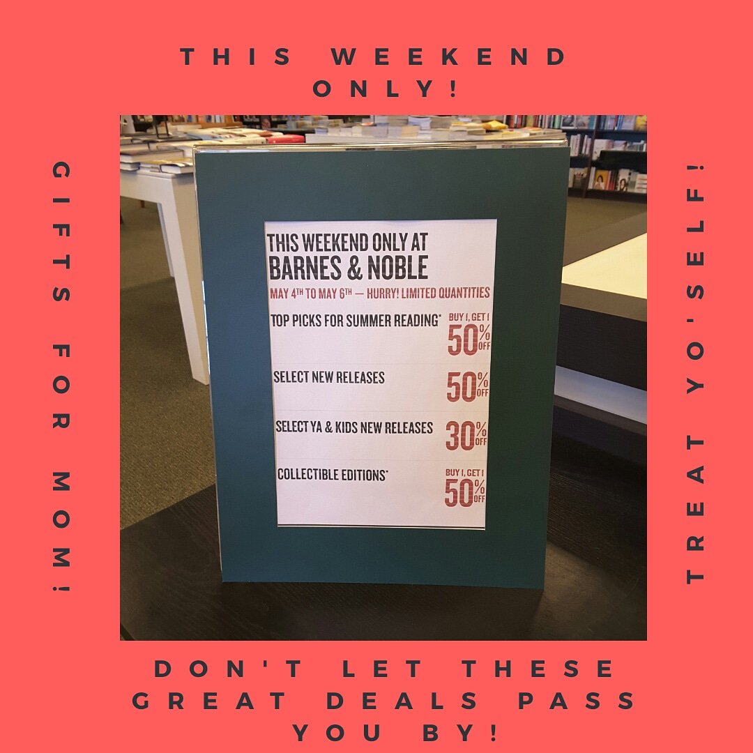 3 Days Only! Come in & take advantage of these great deals! Great gifts for Mom, Grads, or just to treat yo' self! Summer is almost here, so come on in & find your next summer read 🌞 #3daysonly #buyonegetonehalfoff #fiftypercentoff #thirtypercentoff #memberssaveanextra10percent