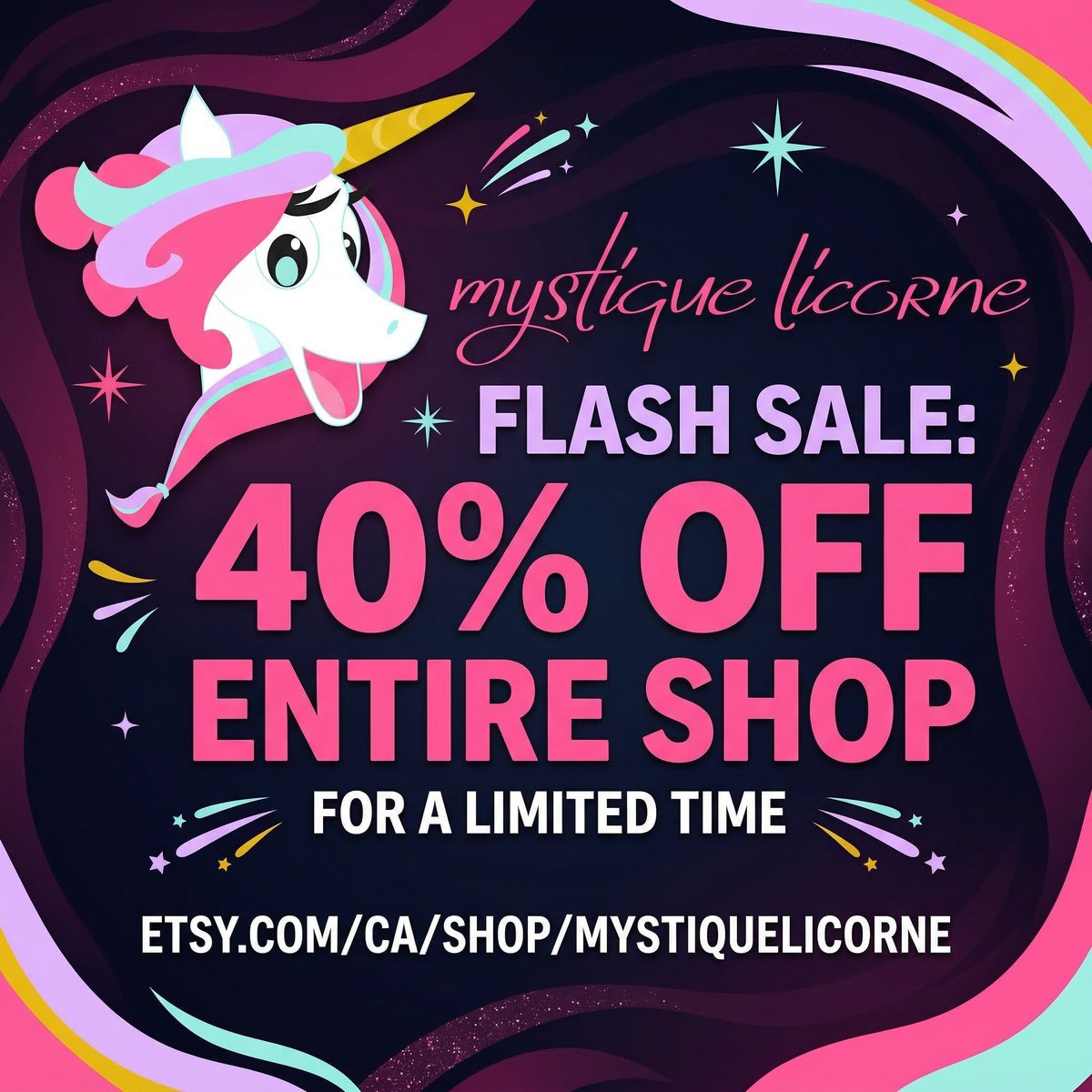 ✨🦄 MAGIC ALERT! Mystique Licorne is glowing brighter than ever! 🦄✨ For a LIMITED TIME ONLY, enjoy STORE-WIDE 40% OFF on ALL our mystical treasures! Hurry before the portal closes! ✨ Tap the link 👇 etsy.com/shop/MystiqueL… #40PercentOff #EtsyFinds #DigitalWallArt