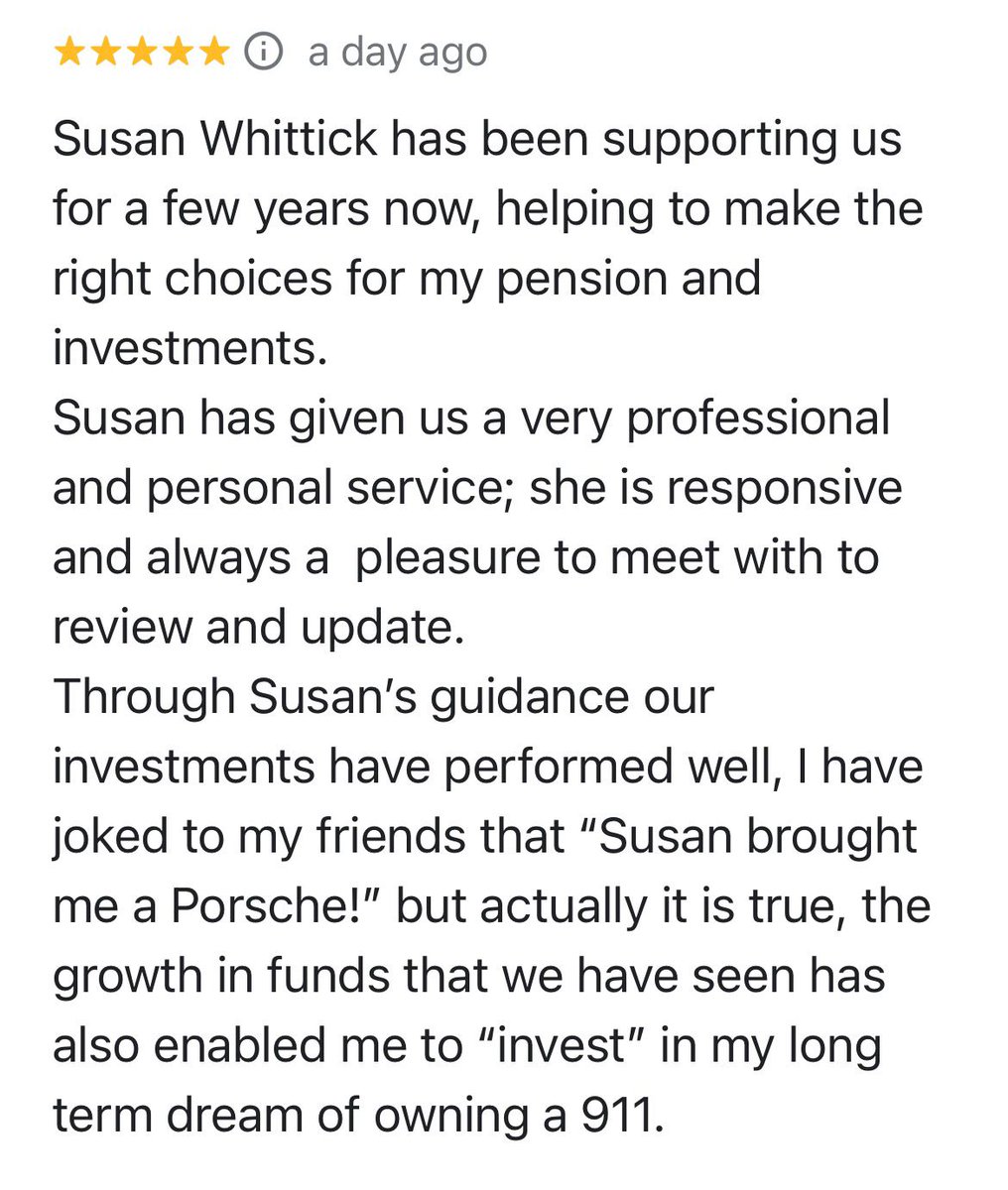 Suz didn’t actually buy my client a Porsche 911… but she did help make it possible 🚗 A huge thank you for this 5⭐review. Helping clients make confident, long‑term financial decisions is what we do best. Suz Redwood Wealth Ltd #5StarReview #FinancialPlanning #WealthAdvice