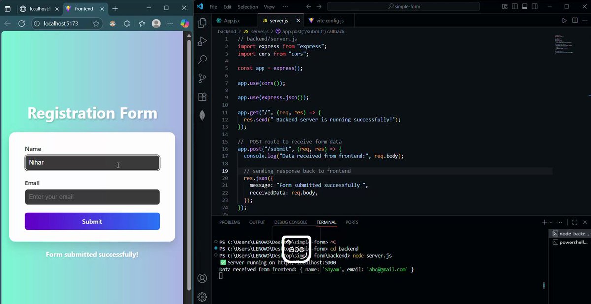 🗓️Day : 72/75 ✅ Learnt about Form handling in ReactJs and connecting ReactJs to ExpressJs. #WebDevelopment #react #75DaysOfCode