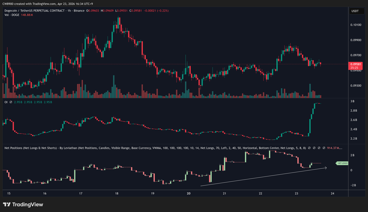 With almost no increase in $DOGE futures positions, OI has exploded. Large volatility is approaching.