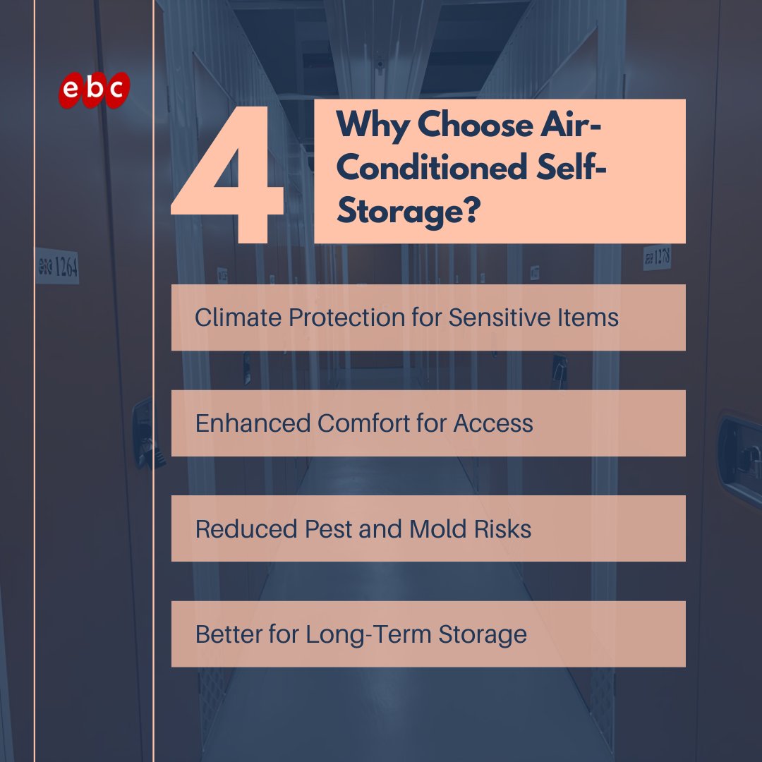 Keep your items cool and safe with our A/C self-storage! Protect against heat, humidity, mold, and pests while preserving valuables long-term. ๐ฌ๏ธโจ Learn more: bit.ly/3Bla9mJ #ACStorage #SelfStorage #StorageSolutions #ebclifestylehub