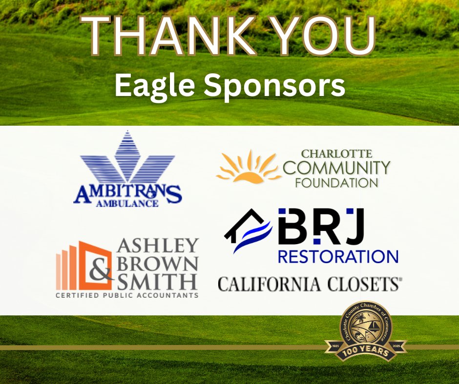 𝗠𝗼𝗿𝗲 𝗘𝗮𝗴𝗹𝗲𝘀 𝗛𝗮𝘃𝗲 𝗟𝗮𝗻𝗱𝗲𝗱! 🦅 Round two of our Eagle Sponsor recognition goes to five incredible businesses that stepped up for our 15th Annual Charlotte County Chamber Golf Scramble Classic. #act #charlottecountystrong #onecommunity #membershipaddsvalue