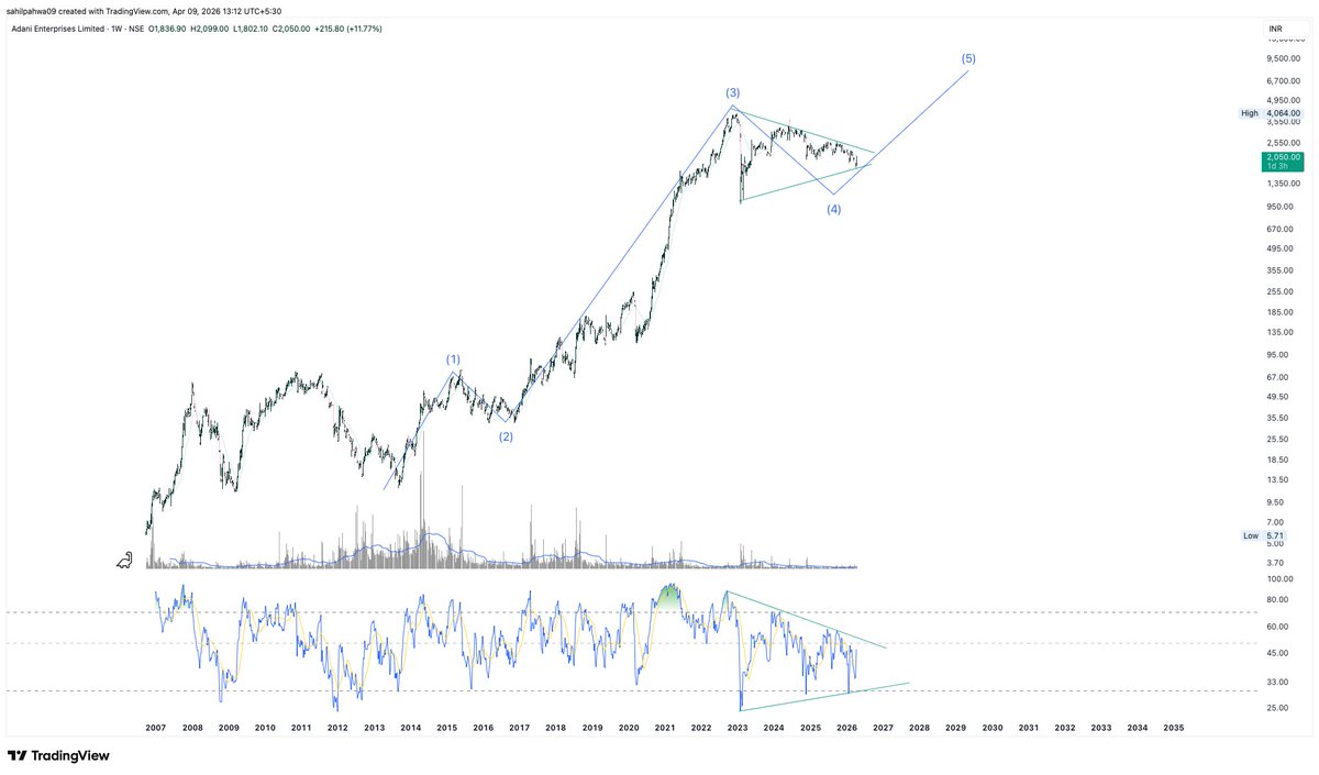 Good Time ahead!!! Watchout for the symmetrical triangle breakout for the confirmation of the 5th up!!! #AdaniEnt