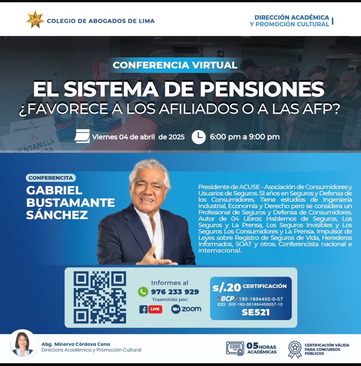 #AFPTips En 32 años las @AAFPoficialPeru recibieron por Comisiones S/25,000’000,000 y ganaron limpios S/6,600’000,000 Te lo explico al detalle el 04 abril gratis en el Colegio de Abogados de Lima. Inscríbete 👇