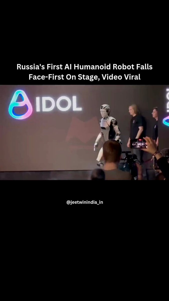 Russia’s first humanoid AI robot, AIdol, didn’t exactly have a heroic debut — it took a tumble right after stepping on stage. #AIdol #RussiaTech #AIHumanoid #TechFail #RobotLaunch #ArtificialIntelligence #ViralVideo