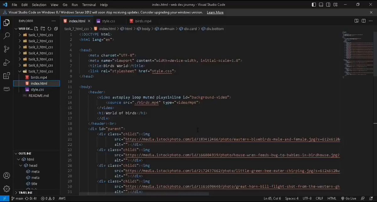 Task 7 ✅ — “Birds World” Page 🐦 Built with video background, Grid + Flex, background-clip, and custom scrollbar 🎨💻 Loving how CSS turns creativity into code! #AIPoweredWebDevelopment #FrontendDev #CSS #KeepLearning