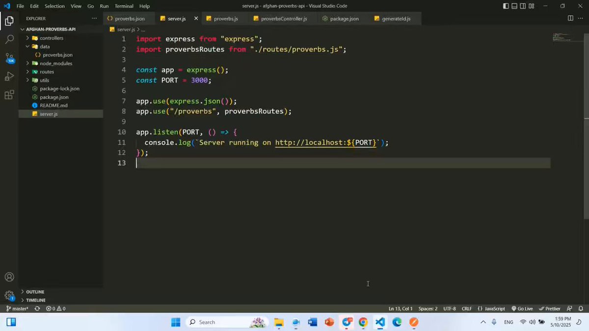 Currently working on a RESTful API to preserve and share Afghan proverbs and sayings in Dari, Pashto, and English.Just shared a quick screen capture of the coding process! @CodeToInspire @E_Ehrari @f_forough #AfghanGirlsCode #APIDevelopment #AfghanCulture #100DaysOfCode