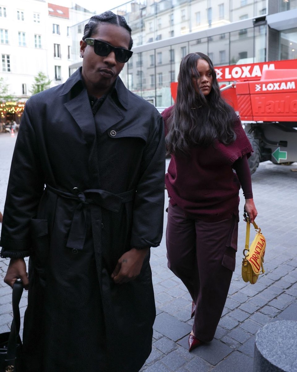 #Rihanna ve #ASAPRocky hafta sonu için yeniden Paris’e döndü. Çift, Rihanna’nın şehirdeki favori akşam yemeği mekânlarından biri olan Siena’ya giderken görüntülendi. #FentyBeauty’nin kurucusu, baştan aşağı monokrom bordo bir görünüm tercih etti: Margiela 2000-01 Sonbahar/Kış
